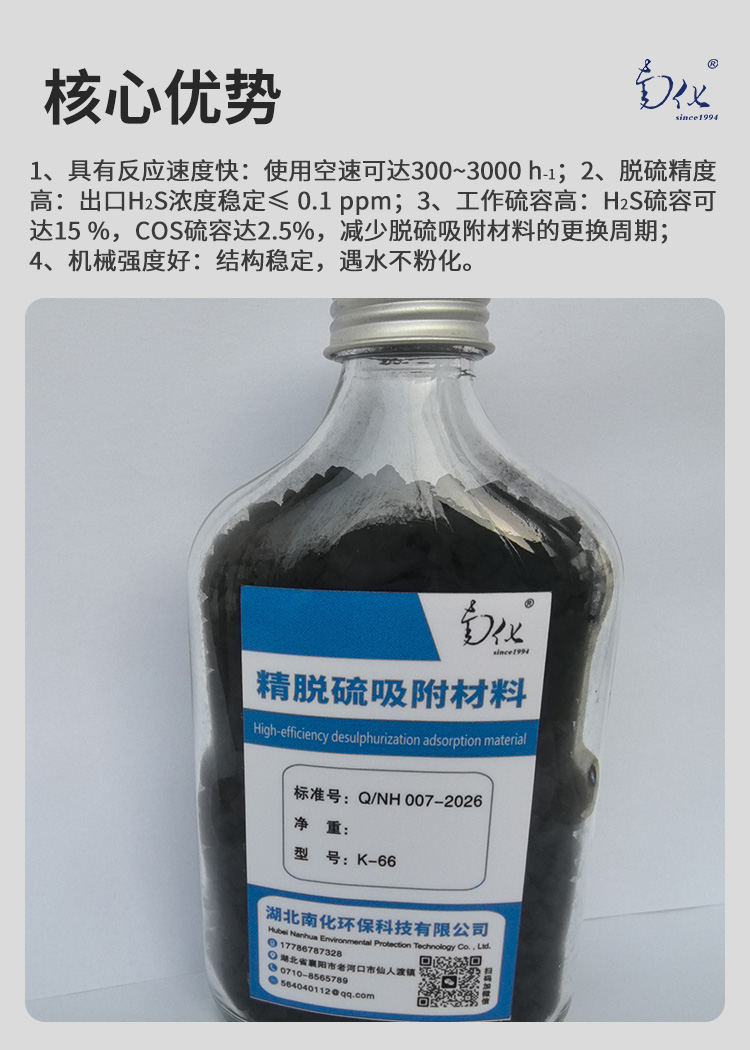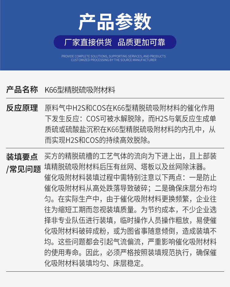 K66型精脱硫吸附材料产品说明书